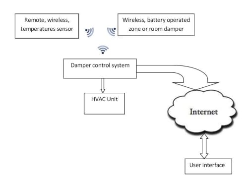 A HVAC zoning system based on a rechargeable, battery operated, wireless zone or room damper and a centralized control system. The system is comprised of three components, a wireless temperature sensor for the zone to be controlled, a wireless,