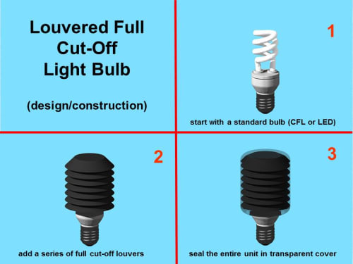 The Solution: A light bulb with louvers designed into the sealed bulb envelope to keep light directed below the horizontal plane to meet modern full cut-off light fixture standards.