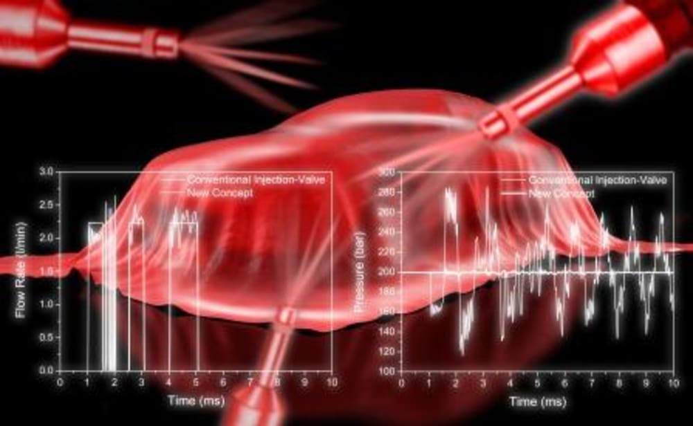 Using multiple fuel injections, combustion methods with direct injection can be realized, which would not be feasible with the intake-manifold fuel injection of conventional gasoline engines. Stratified and homogeneous combustion methods can be realized, but investigations show that further improvements of combustion methods and thus improvements of exhaust emissions are only possible when the pressure pulsations, caused by opening and closing, the injector valves can be inhibited. The latter are inherently related to the required fast opening and closing of the valves and can reach ±30 % of the mean operating pressure of an injector.