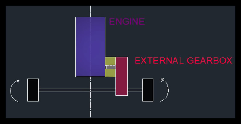 The chassis containing the additional two wheels are carved out of steel pipes. The additional chassis has been attached with the body of scooter with two shock absorbers. An external gear box has been coupled to the output shaft of the motor. The output shaft of the motor is acting as the input shaft for the gear box and the output shaft of the gear box is connected with a differential gear which is further connected to the rear wheels with the help of yoke rods.