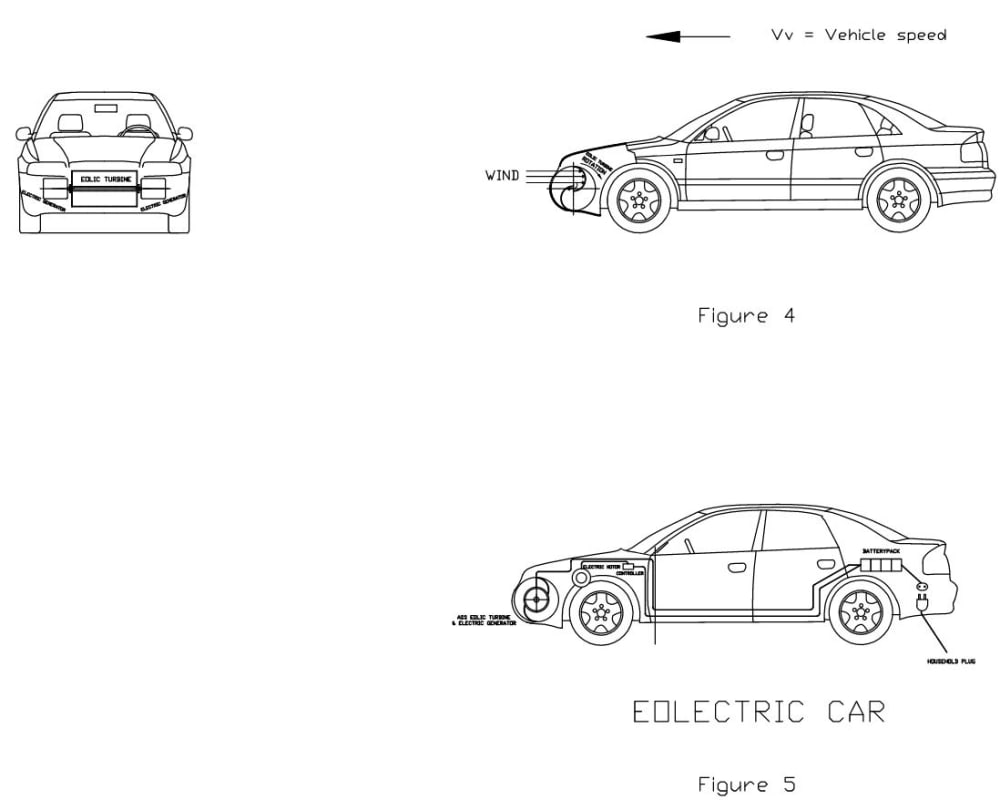 The best position to put the assambly eolic turbine and electric generators are in front of the car (see fig 4).