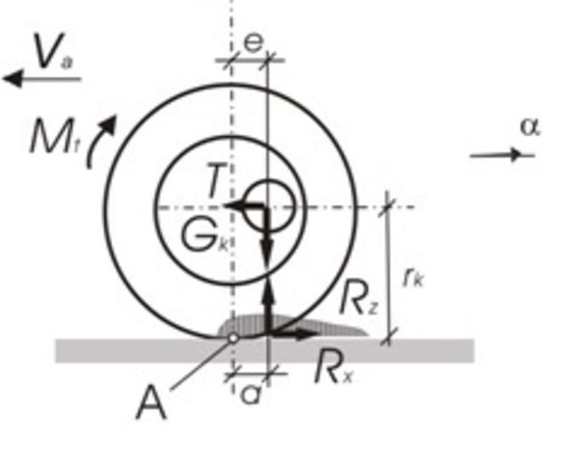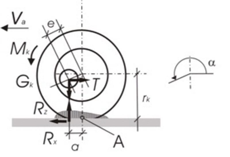 The wheel’s characteristics maintain that its center of rotation mismatches with the center of support therefore the wheel adjusts its external forces depending on movement conditions. For a driven – pulling wheel the balance of the enclosed forces allows to minimize the demand of the external forces, while for the braking wheel it permits to use the most of the sum of these active forces to achieve their maximum.