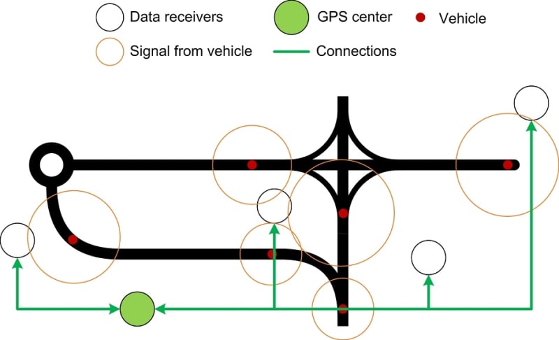 The concept is to use a GPS center to manage all active GPS in moving vehicles. Another issue is that the driver in this system must define his destination. However, driver defines the destination in advance while using the GPS. The GPS will send the destination to the nearest receiver center in the road. The most available communication system to transfer the data is 3G system. 3G systems are being useless by developing the technology of wireless communication. Thus, this system can recycle the conventional 3G system to help driver find the fastest way in his route. A sim card must be provided in all GPS devices to prepare the data transferring. Hence, the GPS center received all the destinations of vehicles in road and gives the best route to them to optimize both the traffic weight and journey time for each vehicle. This aim can be achieve by using appropriate software. In the figure, the communication procedure has been sketched. This idea can improve the transportation technology in parallel to vehicle industry technology.