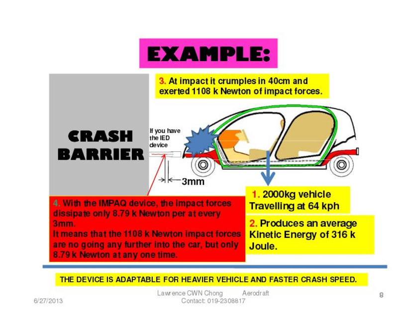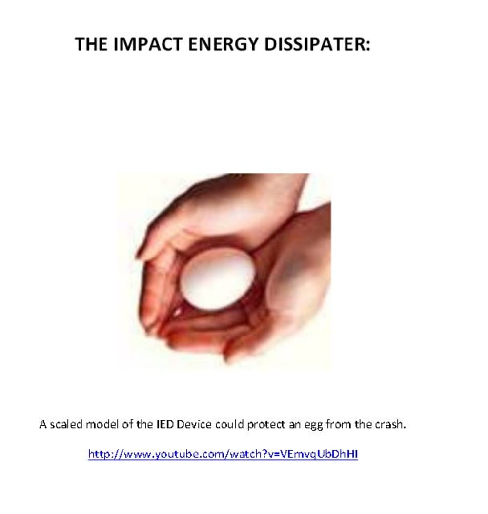 An IEDD or Impact Energy Dissipater Device meant for the prevention of fatal injury from impact related incidents of high-speed vehicles and the like. The IEDD dissipates a very large amount of kinetic energy in an innovative mode whereby the forces generated by the impact are dissipated into manageable form meant for the protection of the most delicate living being in the vehicle and avoid catastrophe failure. Its primary purpose is to prevent fatal injuries.