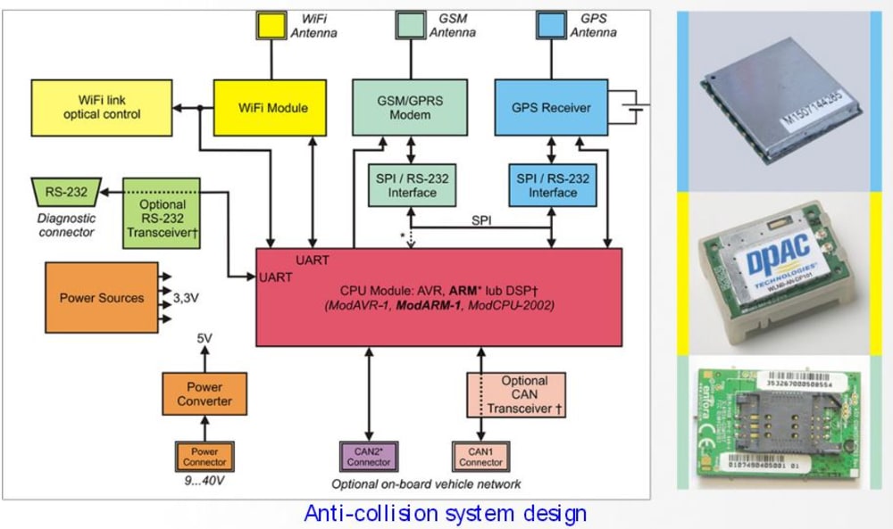 The anti-collision device will be broadcasting data related to its position through WiFi link, simultaneously receiving and analyzing the data from other vehicles within WiFi communication range.
