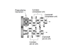 Both of the compressor and power unit of VariPhase engine are provided with separate crankshafts. The crankshafts are operatively interconnected by a phase altering mechanism that, in consideration with instantaneous load requirement, alters the angular relation between the crankshafts. This produces variability in phase relation between the compressor and the power unit and makes VariPhase a variable compression ratio (VCR) engine. Prior art VCR concepts have high introduction difficulty because of their design complexity or an impracticable increase in reciprocating masses.