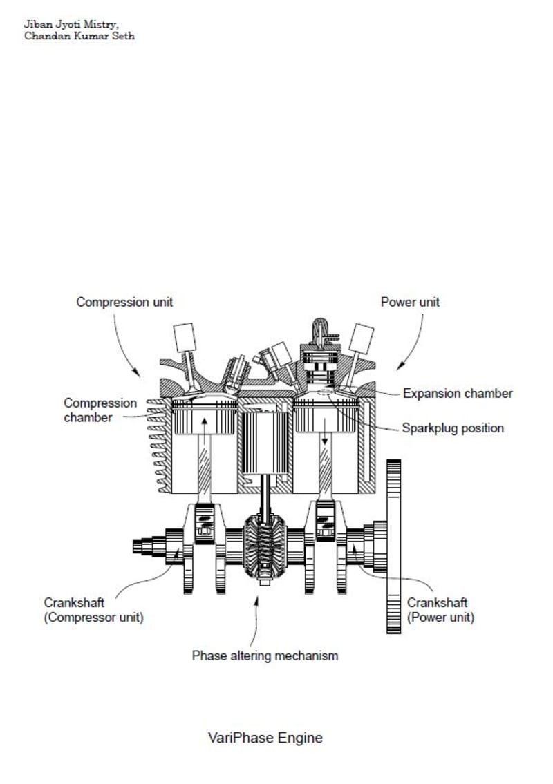 VariPhase engine is also provided with an expansion chamber volume modifier that adds a compact shaped volume to initial expansion chamber. At low load, this added volume improves the expansion chamber shape assuring a suitable combustion. VariPhase engine is operable with very high Cycle Pressure-Temperature ratio along with a high over expansion cycle. It adapted variable valve timing technology to accomplish controlled blowback of intake air. This enables VariPhase SI engine to use a throttle-less intake system and thus avoiding pumping loss. These are amongst the key factors in the efficiency of VariPhase engine.