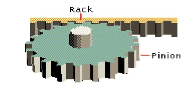 An electrical motor drives a front gear (say pinion)of boggy and as first gear rotates next connecting gear tends to rotate and link continues up to last gear. The tooth thickness of pinion must be same as tooth space of rack for good meshing.