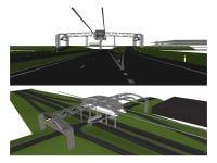 The towers shall be similar to wind turbine towers,constructed of steel or concrete, and as high as needed. The rail track will be suspended at least 50 feet or as high as needed to go over any obstructions. There will be Verticle Wind Turbines on top of the towers and PV (solar ) panels as needed.