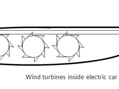 Introducing a design concept that integrates wind turbines and the charging system of an electric car to extend its operating range.