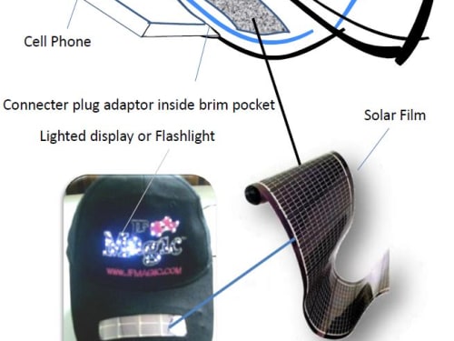 The problem with cell-phone battery chargers on the market today is threefold. They either need to be plugged into a wall outlet with an adapter requiring a 110 VAC connection, plugged into a laptop, or use a cumbersome, stand-alone, encased solar panel with wires that needs to be carried separately everywhere.