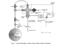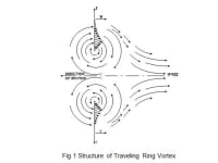 Ring Vortices - . In recent conflicts our military interact with civilians either in battles or violent demonstrations so non-lethal weapons must be reconsidered, after earlier programs were terminated. Analytical and experimental efforts regarding the ring vortex generators started 50 years ago when I operated my open channel shock tube in the engine laboratory of U.C. Berkeley. The initial shock wave created by the outflow from the tube startled people who, if they were in the line of fire, reacted violently to the ring vortex that followed. No harm was done, but all avoided the expected trajectory of the vortices. Sudden efflux from a tube produces a ring vortex entraining ambient fluid and traveling distances thousands times their diameters with little dissipation, (Fig. 1). Operators of aircraft know this and avoid closely following aircraft ahead of them because wing tip vortices can roll aircraft miles away. There is some evidence of U.S. Navy tests of detonations of propane-oxygen mixtures in 3" diameter pipes. These produced 2 foot diameter ring vortices that traveled at 750 ft/s and shredded trees 1/4 mile away. The base for these tests has been closed for decades and the guards at the gate, no uniforms, knew nothing; not even who was paying them. Germans invading the Soviet Union in 1941 captured a test range where 6 grams of explosive generated ring vortices that impacted targets with a force of 250 kilograms. Ring vortices from rifle fire traveled at 70 m/s and broke car windows at 300 meters. Germans were so impressed that they started research to use ring vortices against allied bombers. My interest in this field was revived by the U.S. Army research program in non-lethal weapons responding to worldwide accusations of massacring civilians in revenge for the Black Hawk disaster. My expressions of interest in Army's inquiry yielded several contracts to demonstrate working equipment. I developed a cyclic ring vortex generator in which propane and compressed air were injected into a chamber where they mixed, were ignited and exhausted through a tube, (Fig. 2 & 3). The ultimate goal was to cycle at 12-15 Hz because it was known that humans shaken briefly at such frequencies become disoriented and incontinent.