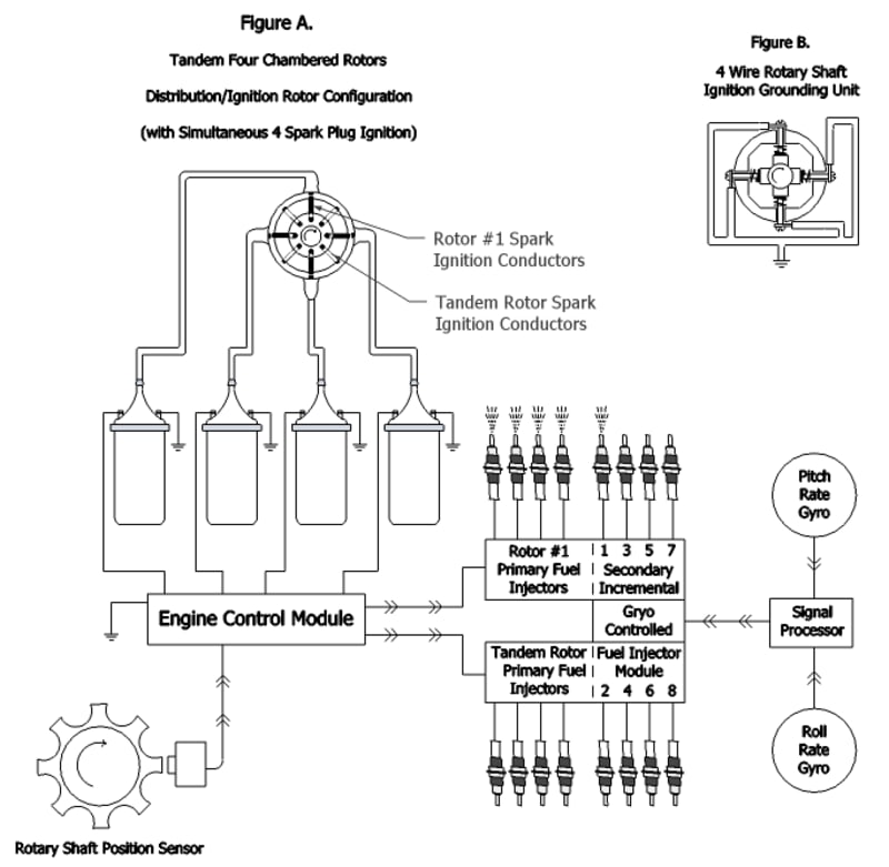 Output thrust is first initiated by substantial exhaust generated by dual tandem four-chambered ultra-high speed rotary Pulsed Turbine Rotor Engines. This exhaust is channeled separately from each Pulsed Turbine Rotor engine to a reheat or afterburner stage where additional fuel is added to the hot exhaust and reignited if necessary. These separate channels of reheated exhaust are then channeled together to create jet thrust propulsion. Altering fuel injection in the Pulsed Turbine Rotors has an intrinsic effect on the pressure buildup throughout the exhaust channels. This pressure and resulting thrust can be varied precisely by activating one, two, three or more, up to all eight gyro-controlled fuel injectors.