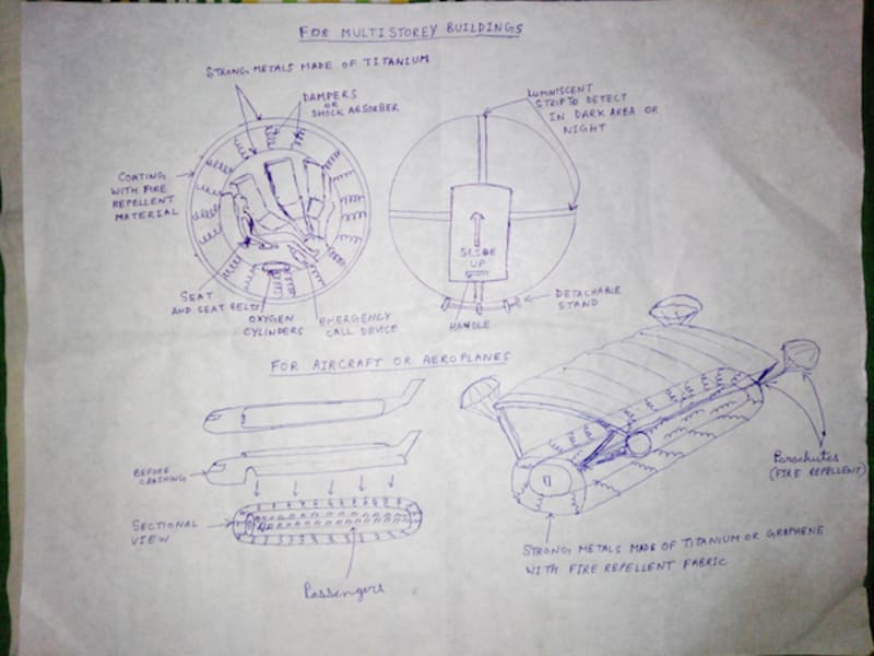 It it true that surviving an airplane crash or collapsing building is very hard because we can't do anything in such situations. So, therefore to solve this problem me and my brother have come up with an idea of a life saving crash survival design. We have visualized its use for two situations: