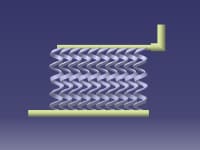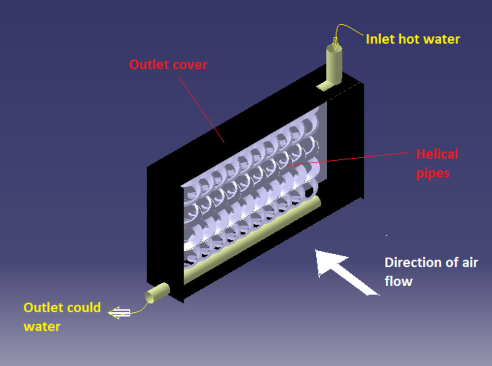 This radiator works on the same principle of heat transfer but instead of straight fluid flow line helical path is provided so that heat transfer rate gates increases considerably.