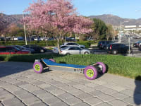 SkatE-Pods are different from most electric skateboards because they are not operated by hand remote-controls. It also uses mechanical brakes to stop, unlike all available e-boards today which uses motor-braking to stop. Because of the introduction of mechanical brakes and the elimination of the motor for stopping purpose, a freewheel clutch is able to be added. This is beneficial because it adds a magnet drag-free coasting which is helpful for extending battery-life, unrestricted downhill and tricks, and the ability to easily manually push the board when it runs out of battery-life, or when you turn it off.