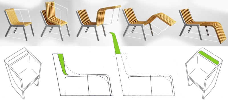 standard size similar to that of an average chair. The patent protects the basic idea «double-chair» in all kind of shapes and all sort of sizes: each context has its needs and a double-chair to solve them.