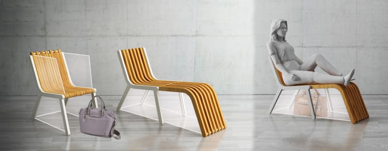 Easy-going and cost-free double-chair to spend short urban waits without being afraid to take a nap and having