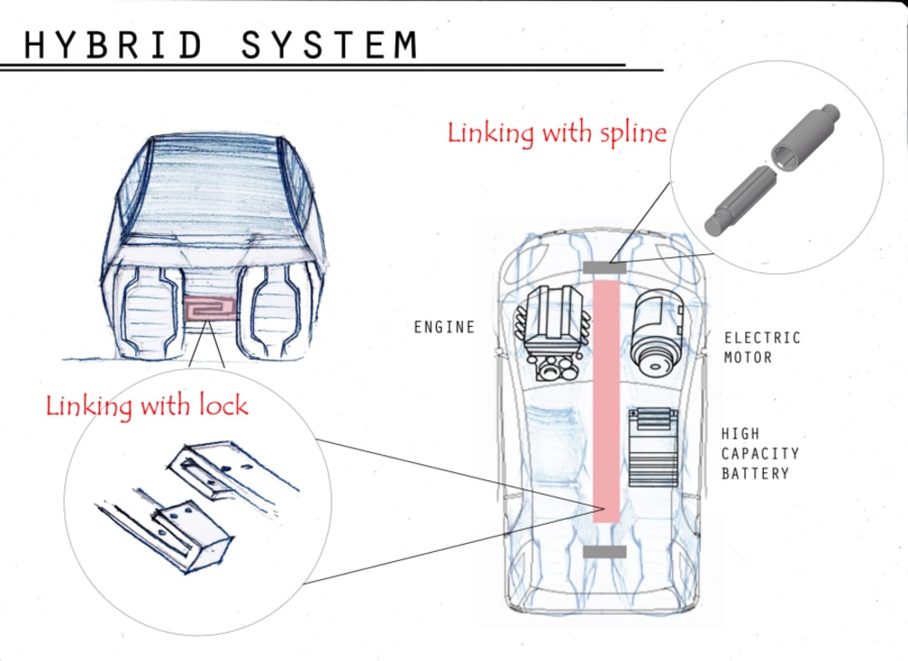 "MOTORBRID" can transform between two motorcycles and one 4 wheels car. Moreover, for future convenience, MOTORBRID transforming station can be set up at any places (eg. between city and city) to support travellers or to solve emergency situations.