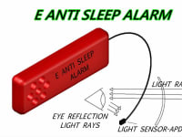 E Anti Sleep alarm is a electronic device that attaches to normal spectacles and gives an alarm when eyes close for more than 1 second. It works on the principle of reflective light from the Eye and Retina.It will not give false alarm when a person blinks his eyes. Average duration of a eye blink 0.1 to 0.4 sec (use operation hysteresis circuit). It's designed in such a way that it takes into account the dark period.