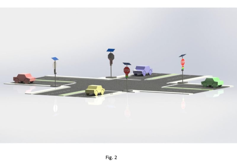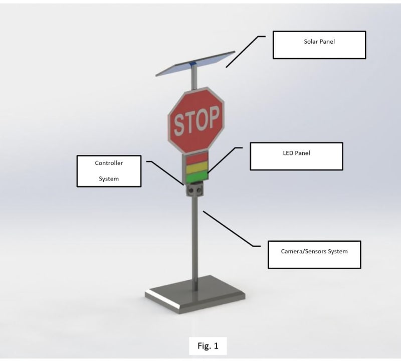 The PSS will be tamper and weather resistant. Fig. 1 of attached pdf file shows a form of the product. This package shows the form of product that can upgrade any existing stop sign. Another form of the product can be installed like existing stop sign. Fig. 2 of the pdf file shows a deployment of 4 PSS’s at a junction.