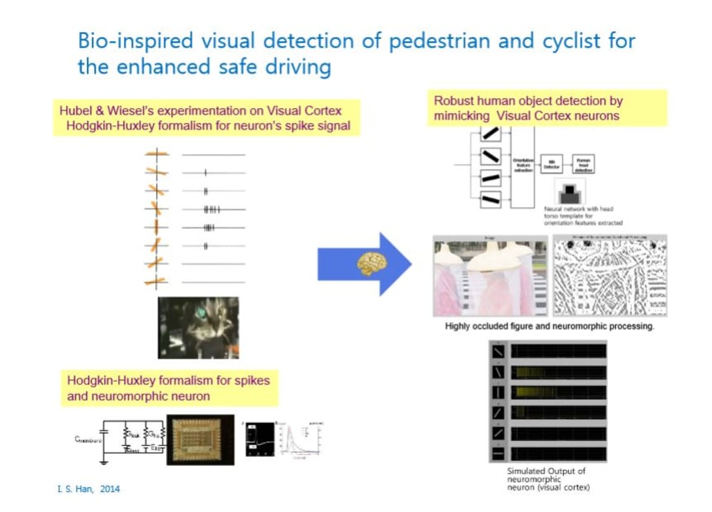 The design idea is proved for the VLSI ASIC as a cost-effective and reliable device, with an early prototype, which can also be integrated as part of sensor. Or the neuromorphic vision can be implemented as algorithm into the computing platform or mobile ICT devices. For various manufacturing methodologies are eligible, the bio-inspired visual detection of pedestrian and cyclist will give the variety of opportunities to improve the road safety and advanced driver assistance system of automotive vehicles, by avoiding the risk of accidents.