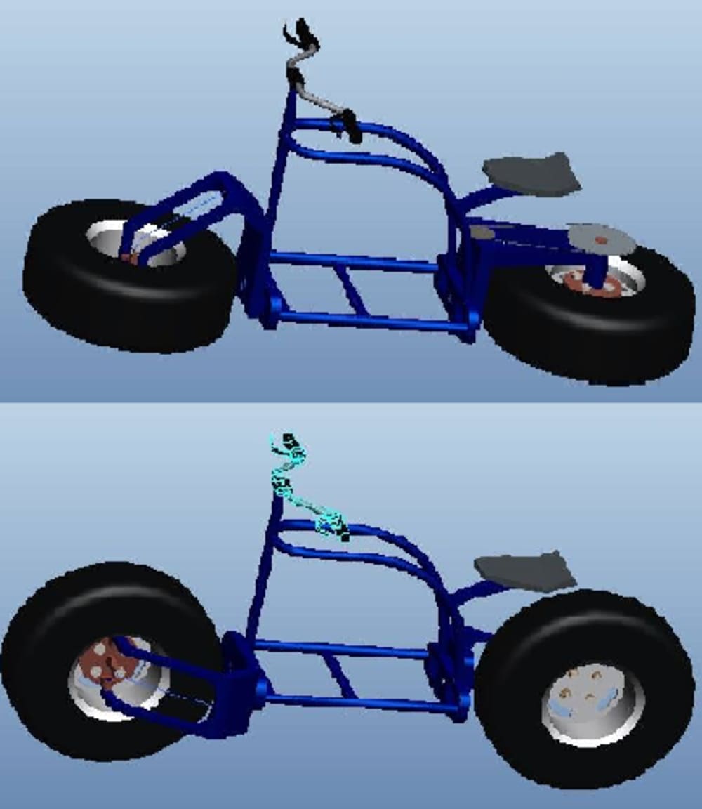 Amphi-BX is a hub steered, fork-less amphibious two-wheeler which can run both