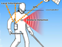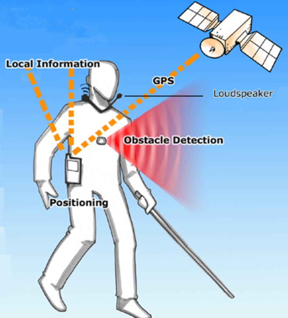 For many visually impaired people, a cane or a stick is a close friend helping them to detect and avoid obstacles in the walking path. During walking with the cane going from place to place, they sense and guess directions and locations by hearing sounds surrounding, sniffing smells in the air, feeling touches on skin, counting footsteps as they walk, and memorizing events in time and space. However, it is difficult for them to guess where they are when the surrounding environment are new or changed, or when they get lost memory of locations.