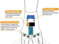 This project aims to provide the blind navigation information via audible messages and haptic feedback, helping them localize where are they, where they are going to, and to improve their mobility. This project also allows blind people to enter notes and control device operation via Braille capacitive touch keypad apart from sending SMS by entering the number and text. There is an emergency button which will trigger an SMS that will send the present location of the user (GPS coordinates) to a remote phone number asking for help. In addition, the device provides user information needed, in audio format, including time, calendar, object color, alarm, obstacle distance, navigation direction, ambient light and temperature condition. The purpose of this project is to help blind people improve their communication ability and depend on none during walking in even unknown areas.