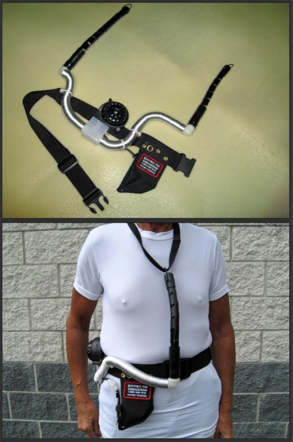 Military proven, the first system was developed to keep Army tank personnel cool in dessert conditions where inside temperatures can reach 160 degress F. The new light weight [under 2 lbs] portable belt mountred battery operated THERMAL STAR cooling apparatus contains a high output fan which is connected to outlet ducts that discharge air from waist mounted nozzels. The nozzels may also be attached to spiral air distribution tubes which can be placed over clothing or directly against the body, neck or head. Upon operation the air exiting from the waist mouted nozzels or spiral air discharge tubes create a cooling effect by evaporating body moisture from perspiration.