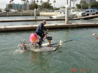 Made mostly by high quality recycled materials & items for everyday use. This Floating Water Craft Device is Made Possible by the use of 2 Liter Bottles, Inflated to 40 psi and 12 on Each Side, Solidly Mounted on Each Side of 9 Foot Surf Board to help the Floatation Buoyancy and Balance Even on Moderate Waves.