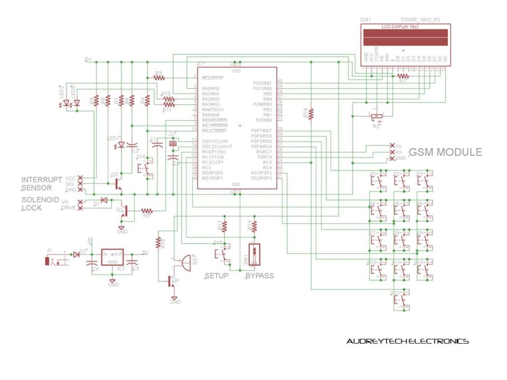 Every time a password is correct, the circuit will send the name corresponding to the password stored to the cellphone number registered. The owner/user has only 3 attempts to enter the correct password. If after 3 tries the password is still incorrect, an alarm will sound and PEEL will send an sms message to the cell phone registered that there is a unauthorized entry. It has also a switch (BYPASS) to bypass the password, in case there is a event in your house where a password is not needed. Flip back the switch and the password is enabled again. The password digit will be displayed for short period of time then will turn into an asterisk for security purposes.