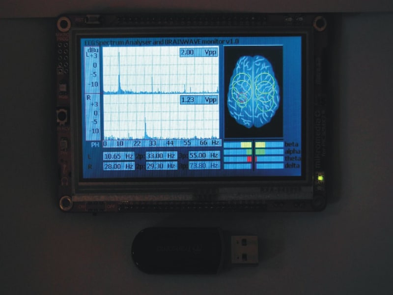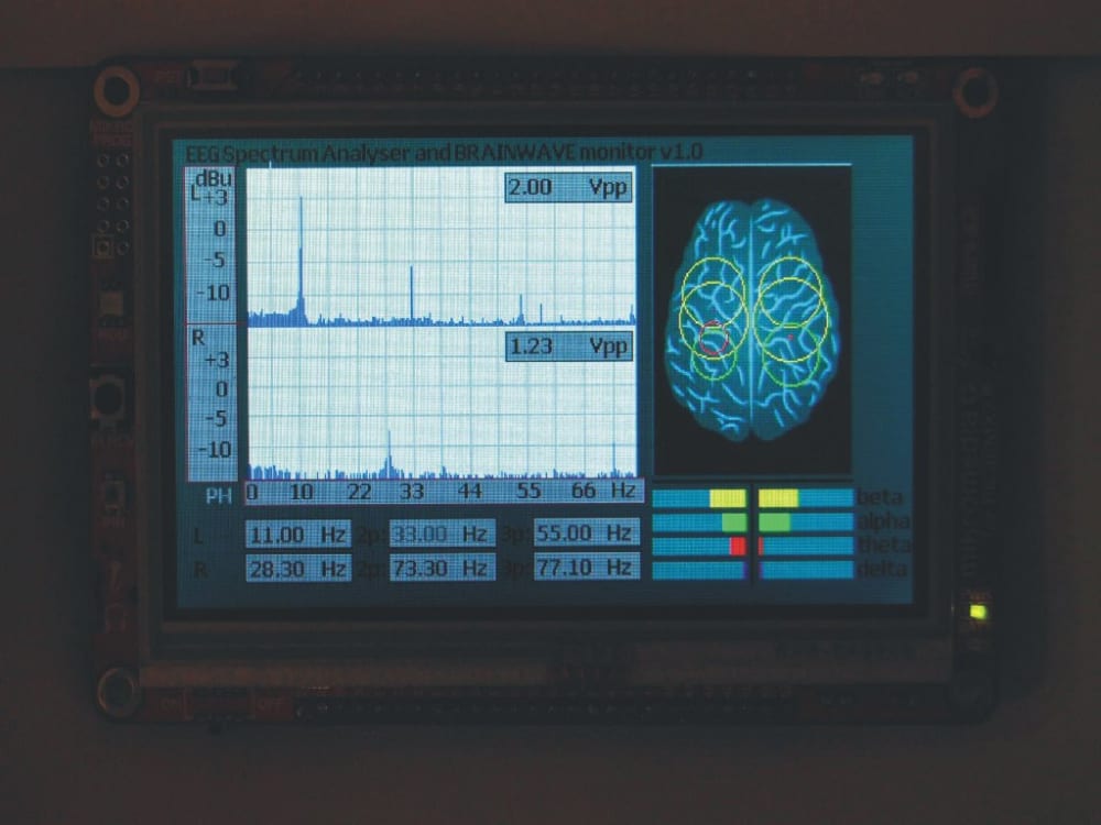 Monitoring of the EEG (Electro Encefalography) brainwaves is important for medical, sports, relaxation and other activities. We have Beta, Alpha, Theta and Delta waves. In alpha state we have physical and mind possibilities amplified. Learning, sports performance, meditations, sleep control. With insight into the alpha state, you have objective parameters to develop your skils. In my practice, I know people who meditate for years with no real achivement of the alpha state and real relaxation. All was subjective. Classical EEG equipment analyses are offline, after recording you can analyse it in frequency domain with FFT. Many of the EEG devices are non-portable, show EEG in time domain. In many situations you need brainwaves in real time, fast.