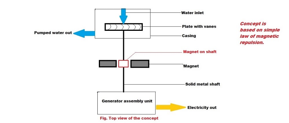 According to this law, I have made a simple diagrammatic arrangement of a solid metal shaft which can serve as a source of pumping water over small heights as well as can act as shaft for generator.