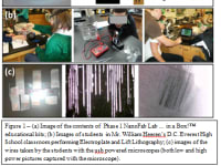 NanoFab Lab … In a Box!™ Educational Kit is a product that brings the technology to high school and post-secondary students. It provides a connection between their curriculum and the emerging field of nanotechnology and nanomanufacturing. The kit contains everything with the exception of water and inexpensive chemicals for allowing students to grow nanowires. The UDT electrodes get connected to a hand-held, battery-powered, web-enabled instrument called a potentiostat that allows precise control over the electrochemistry and records data for analysis. The wires produced may be imaged using a 700X USB powered microscope allowing students to measure wire quality and size. Both the potentiostat and the microscope connect to an included 10” Android tablet for uploading their data, images and videos through a secure web portal. The website documents their progress and gives feedback for how to improve the quality of their wires. The NanoFab Lab … in a Box!™ educational kit produced by a non-profit educational organization represents a first of its kind and first to market nanotechnology product for an audience that needs hands-on educational tools.