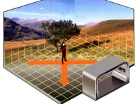The concept of a current Holodeck is to line a swimming pool w/ HDTV screen of LED modules. The entire swimming pool will be a Holodeck w/ water as the medium to suspend the User above floor & sides of Swimming pool.