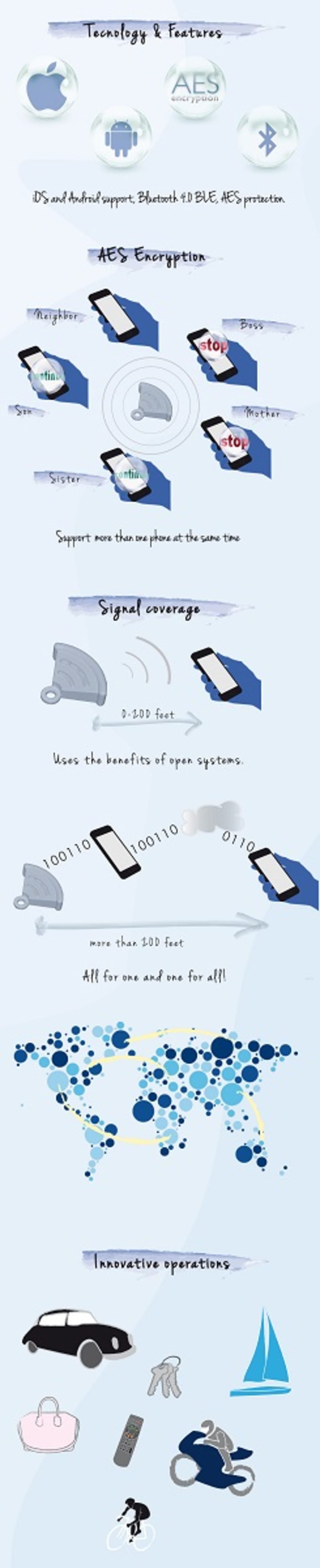Blumove is a versatile and innovative Bluetooth beacon product made with many interesting features that can be used in several ways. Children, pets, and unsecured valuables at home and business can be monitored and protected. Blumove will send alerts when a monitored item is moved, such as doors, sports equipment, and valuables. It can even be used as an odometer. There is no need to waste our time to watch all these things because Blumove reminds us if anything happens. It can be used as a remote to find a smart phone or even for receiving phone calls. Short text messages can be forwarded so there is no need for post-it notes. It can detect any failure by monitoring movements. Furthermore, all these information can be stored in logs to follow up on the activities.