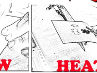 The solution is here in the form of a pen which has corrosive ink in it. When you heat up the paper, the ink burns off the paper from places it has been marked with.