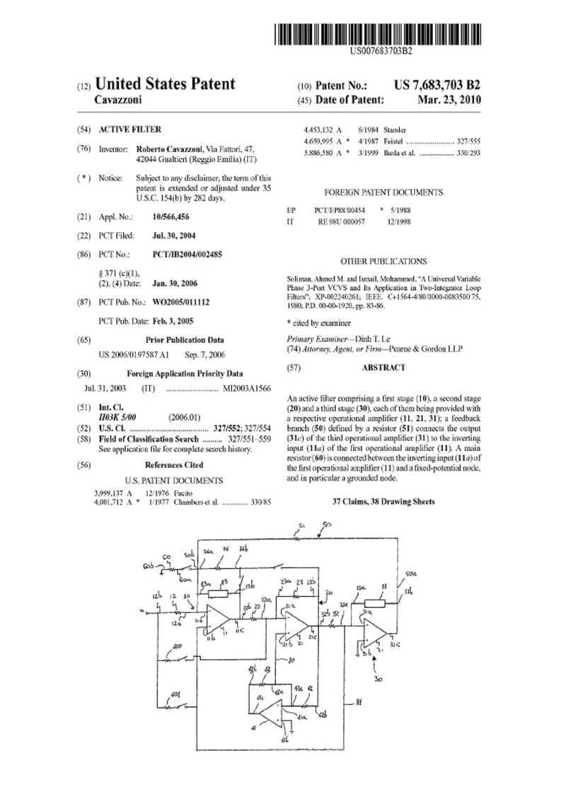 2° order, 3 base-stages biquad/universal continuous time analog active filters type resonant and, more particulary, active full self-compensation techniques to improve the frequency range, the stability and/or the selectivity of the filters themselves with a very low, or as if zero, cost. These active filters techniques are the only ones that can (fully) erase the parasitic poles using a single resistor or an additional operational amplifier which has a functionally filtering output. This patent extends to Italy (priority ITMI20031566 A1).