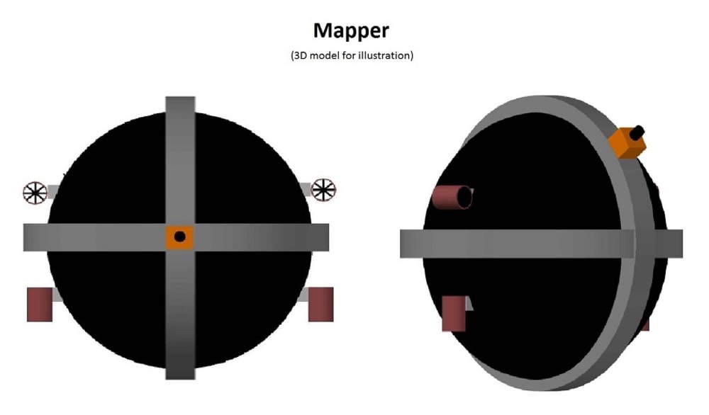 The mapping performance of the Mapper is based on the scanning ability and techniques. The mapper is designed in a circular form (like a circular ball) with the ability to fly. The laser scanner is placed at the inner center of the circular bot and setup is done to make the scanner slide in both horizontal and vertical ways to scan the entire area. Thus better scanning performance is achieved to scan the entire area.