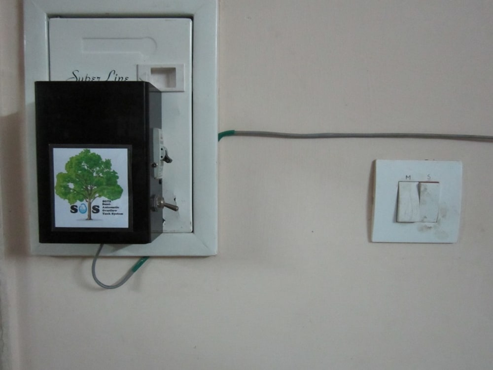 SOTS device works on mechanical linkages combined together to form a complete electro-mechanical device capable of performing the given task. A MCB switch is used to power on and off the pump, a small 12V DC motor is used to trigger the MCB relay thus switching off the pump. The signal to start the motor to trigger MCB comes from connected float switch that is installed inside overhead tank at desired level. This trigger switches off the main supply thus pump, motor and buzzer (if installed) turns off after the tank is full.