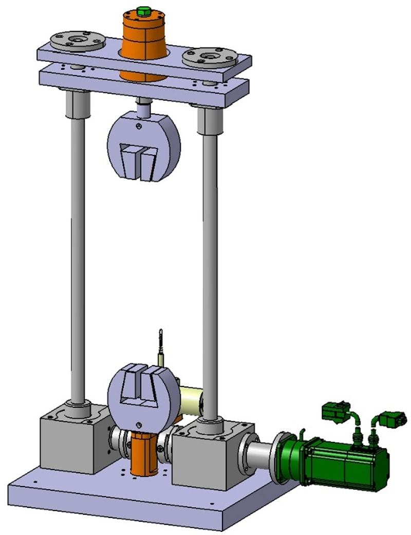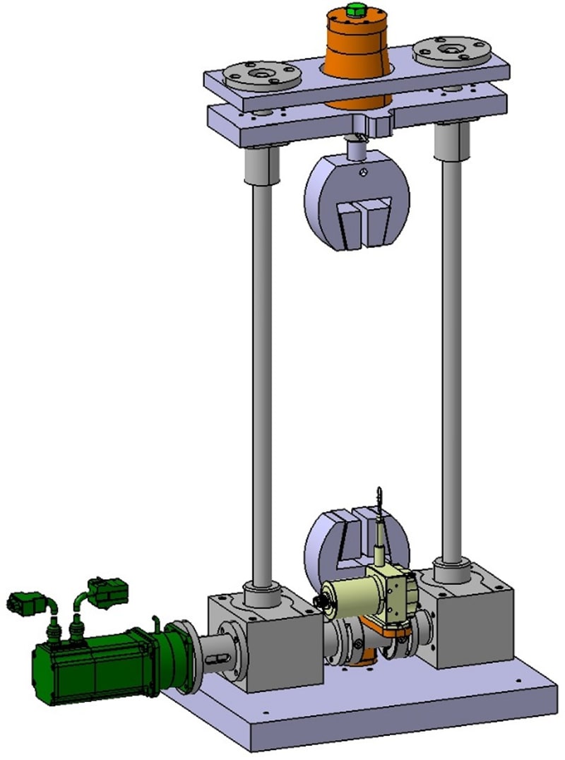 For tensile testing, 40% (length of stroke 296mm) of the available vertical space inside the climate chamber can be used. The permitted temperature range is -10°C to +40°C, which corresponds to 30,3% of the desired range. The temperature range is limited by the spindle-type lifting gears (min. -10°C) and the e-motor (max. +40°C). The test setup partially meets the requirements to the force and length measuring systems according to ISO 7500-1 and ISO 9513. The requirements to the critical value of the relative error of the deviation of the measured forces are met at forces higher than 120 N. The requirements to the resolution of the range measuring system are met at changes in length of more than 9 mm.