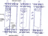 An inclined second frame supported on horizontal first frame with front end closer and rear end at certain greater height a longitudinally truncated cylindrical rubber covered axle having a V notch along its entire length located diametrically opposite to the truncated portion, rotatably mounted at the front end of inclined second frame and receiving rotational motion from engine mounted on first frame through chain sprocket drive supported under the inclined second frame with adjustable support.