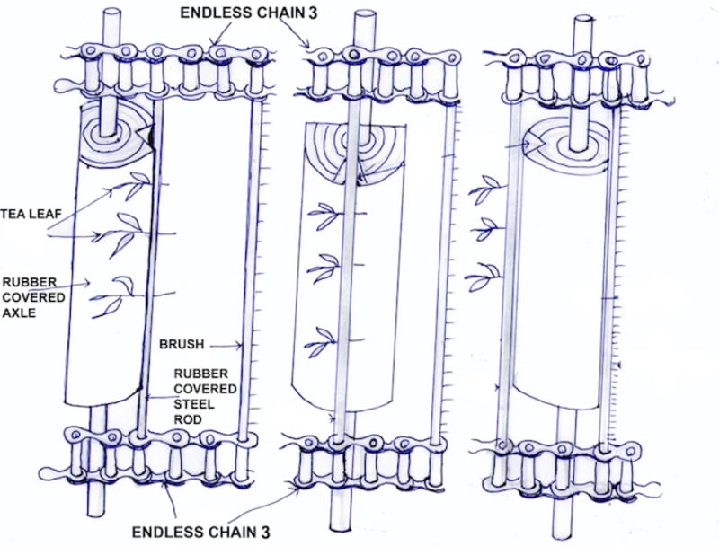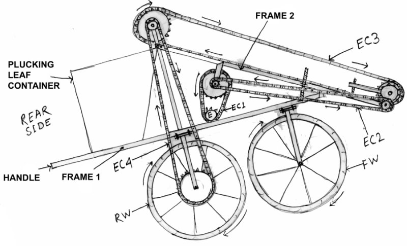 it is a major problem in the Tea Industry to harvest only soft tea leaves for processing into tea where agriculture workers are not plentiful or workers cost are high. There is no satisfactory mechanical tea harvester has not yet been developed for tea harvesting because the handheld and hovercraft type machine pluck irregular height cut and heavy wheel or tracked machine damage tea ground, root disturbances.