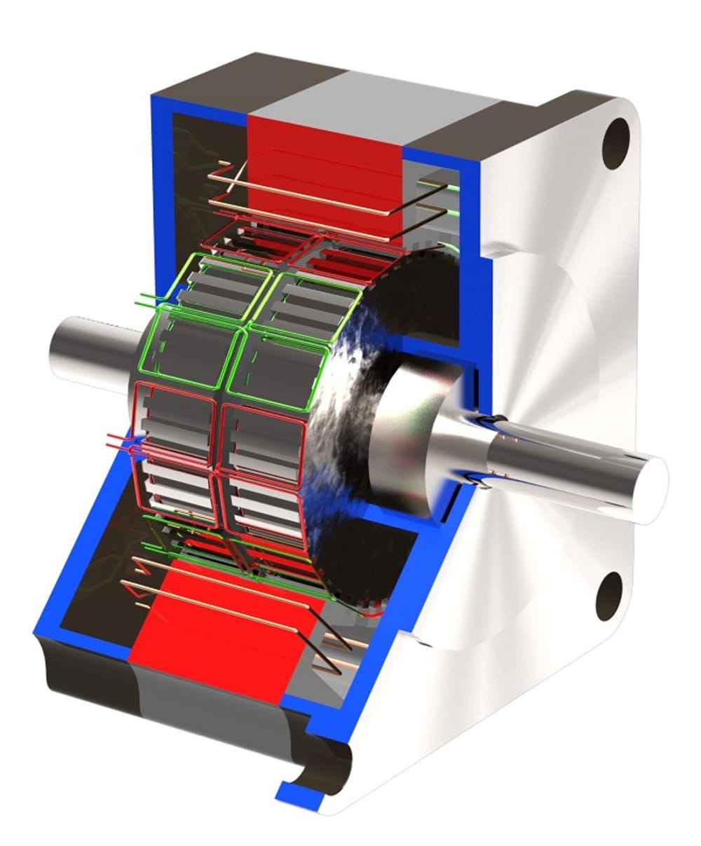 The Mosolver requires only the use of a couple of A/D channels on the DSP that controls the PWM drive, and a couple of buffer amplifiers. This technology enables a robust, low cost, high performance servo system in a compact and rugged package. The technology is also applicable to other motor types including 2 axis Sawyer motors.