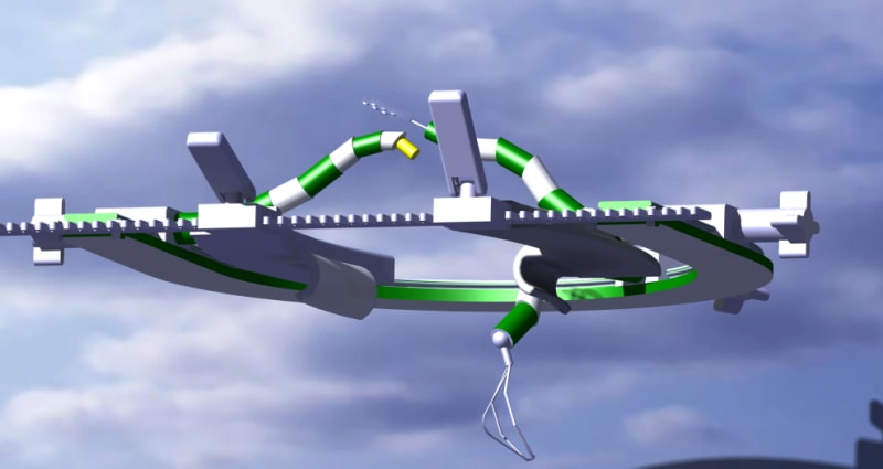 The front of the Multi-joint arm will have a clip-on and off attachments for number of purposes.