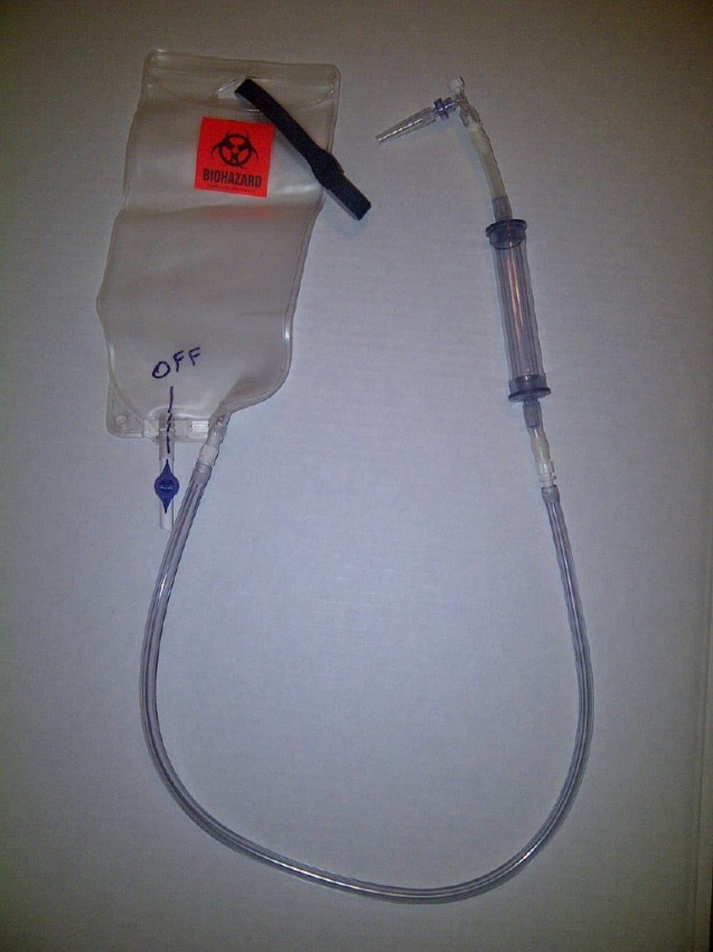 The current catheterization procedure for a Mitrofanoff urostomy is to use a catheter and a syringe, emptying the bladder one syringeful at a time, uncoupling, emptying into a bowl, recoupling and drawing the next syringeful. The biggest risk is spilling urine next to the patient, likely onto a bed. The Mitrofanoff utilizes stomach tissue grafted into the bladder, increasing urine volume but also introducing mucous into the urine, which if not flushed out, can cause bladder stones or infections. This sediment is usually removed by a complicated irrigation technique, where the trick is to keep clean all implements clean that introduce fluid into the bladder for flushing. It gets complicated quickly.