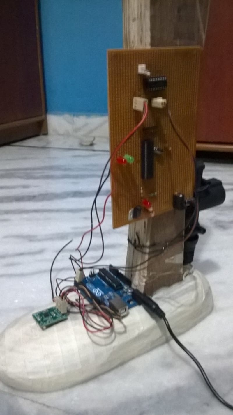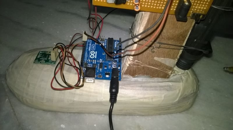 It has an accelerometer which is placed just between the inner and outer arch positions of an original leg. The 'yaw' of this sensor is sent as a feedback to an AtMega 328 microcontroller (or an Arduino) which then gives a signal to a motor after some delay. The motor is present near the inner and out ankle bone positions. Upon receiving the signal, the motor moves in a opposite direction in which the 'yaw' value is back to zero. In other words, the motor is actuated to move in the opposite direction of initial ankle's motion.
