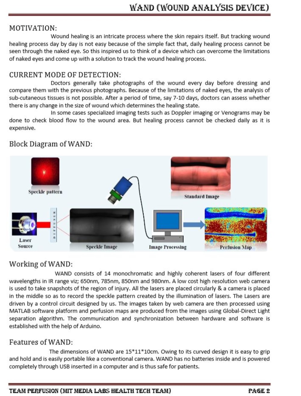 W.A.N.D is designed to produce perfusion maps and help the doctors in analyzing the progressive healing of wounds over a period of time. Doctors can also predict the effect of drugs being administered on the patient in the healing of wounds by monitoring the wound and taking its images regularly using WAND.
