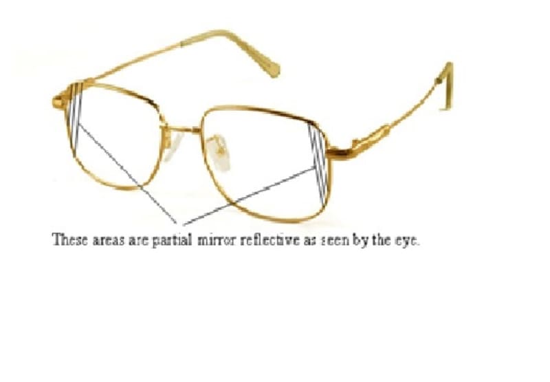 I would love to see what is behind me. For conventional glasses, the far left and far right of the lens is seldom used. If we make that portion partially reflective as seen by the eye we can expand our vision to the rear on both sides. Now, by slightly turning my head to the side I can see behind me.